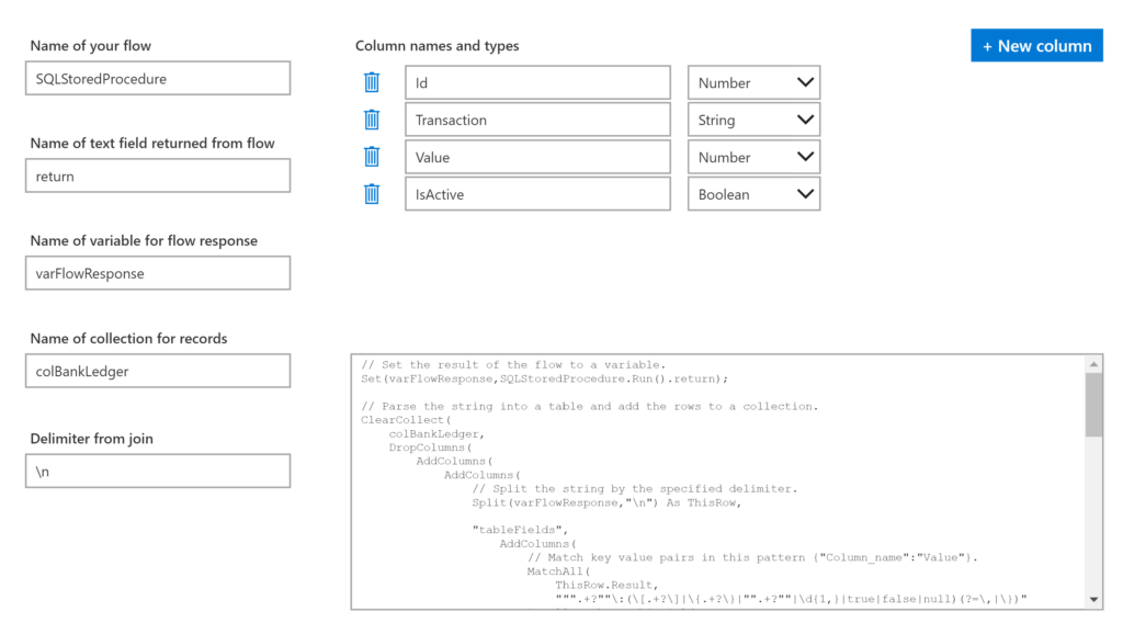You may also want to preemptively decide which columns you would like to return into PowerApps if your stored procedure does not already do so.