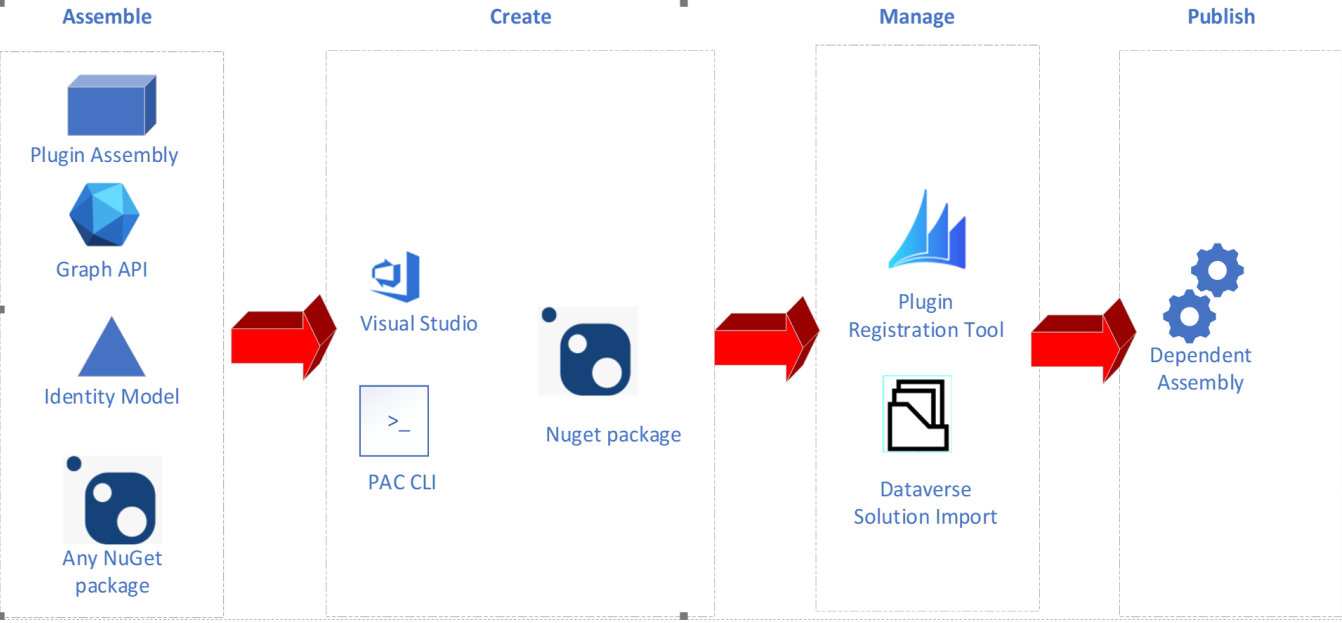 The Dependent Assembly feature provides a supported way for developers to include additional dependent assemblies along with the plug-in assembly when registering a plug-in with Microsoft Dataverse. This feature allows developers to include other required .NET assemblies or resources (for example, localized strings) with their plug-in assembly in a single NuGet package that is uploaded to the Dataverse server during the registration process.