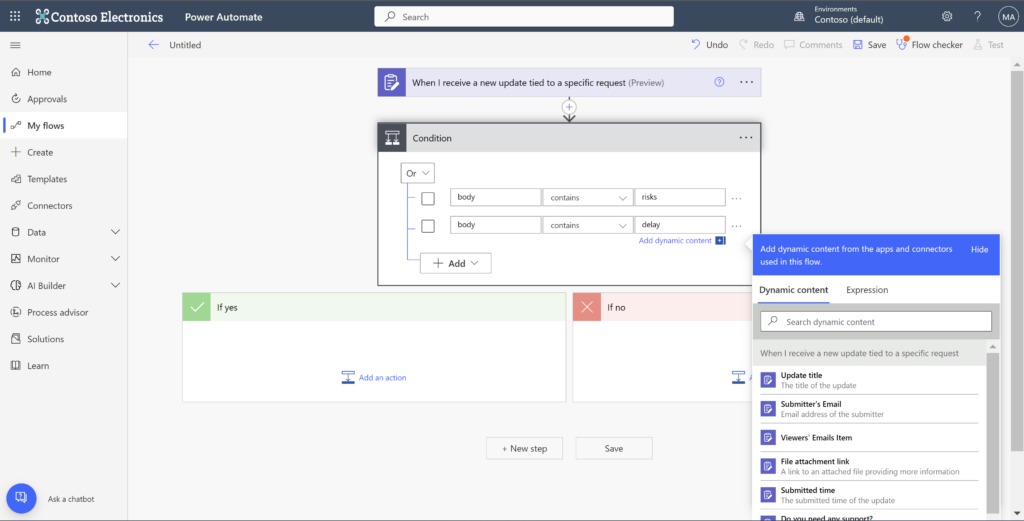 - Create a flow and select ‘When I receive a new update tied to a specific request’ as the flow trigger.