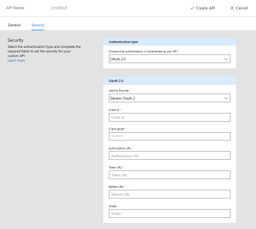 First, custom APIs now support API Key authentication. This means you can define a header or a query string that will be sent on all of the requests to your API. Second, Custom APIs now can authenticate against any service that supports the full OAuth 2.0 specification. This requires you to provide: