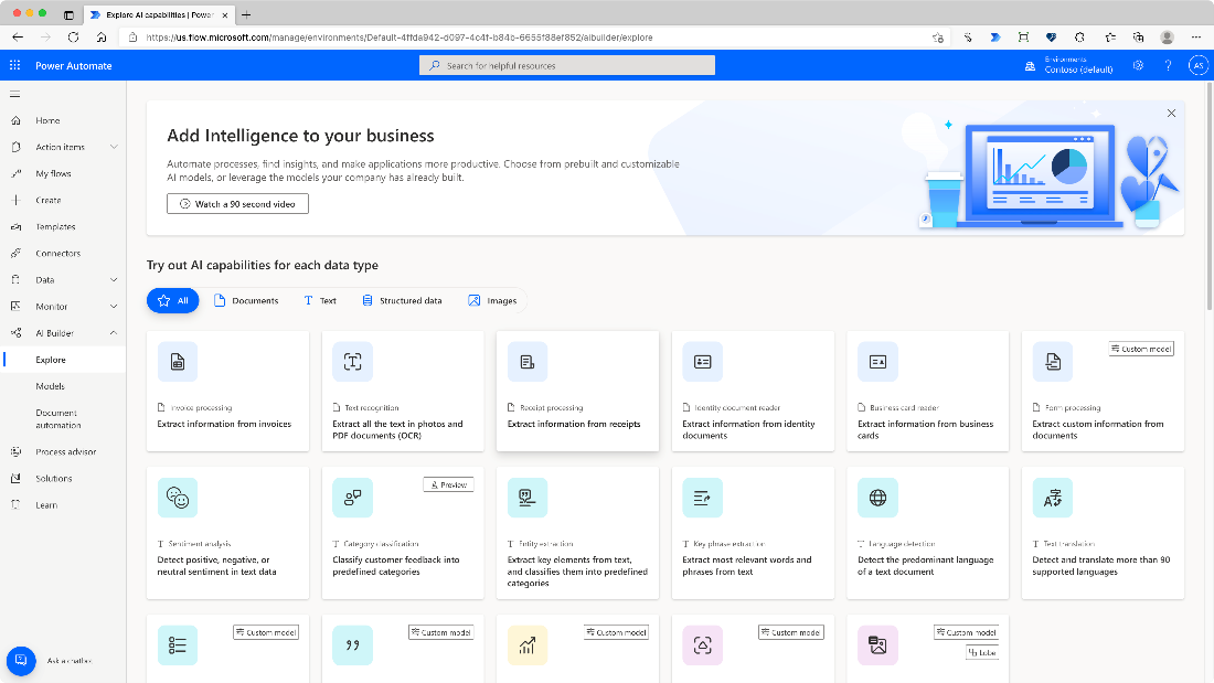 We have added a video presenting AI Builder and how it can help to enhance your business.