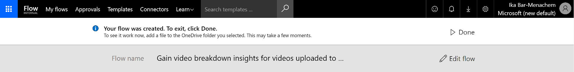Finally let’s click “Save flow”. Once completed you will see the Done button at the top top of the template creation page:
