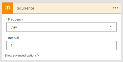 Because you should get Daily reminders we will start out with a Recurrence trigger that runs every day. You will need select the Frequency menu and choose Day:
