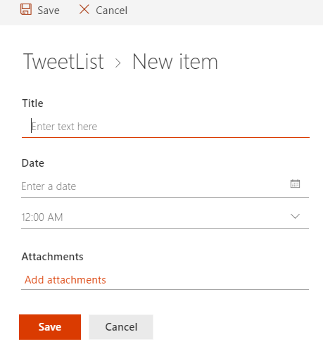 When you want to have a tweet be sent out, go to the SharePoint list you created and select New Item. Fill in the columns for Tweet text and the date to post. As soon as you click Save your tweet will be scheduled.