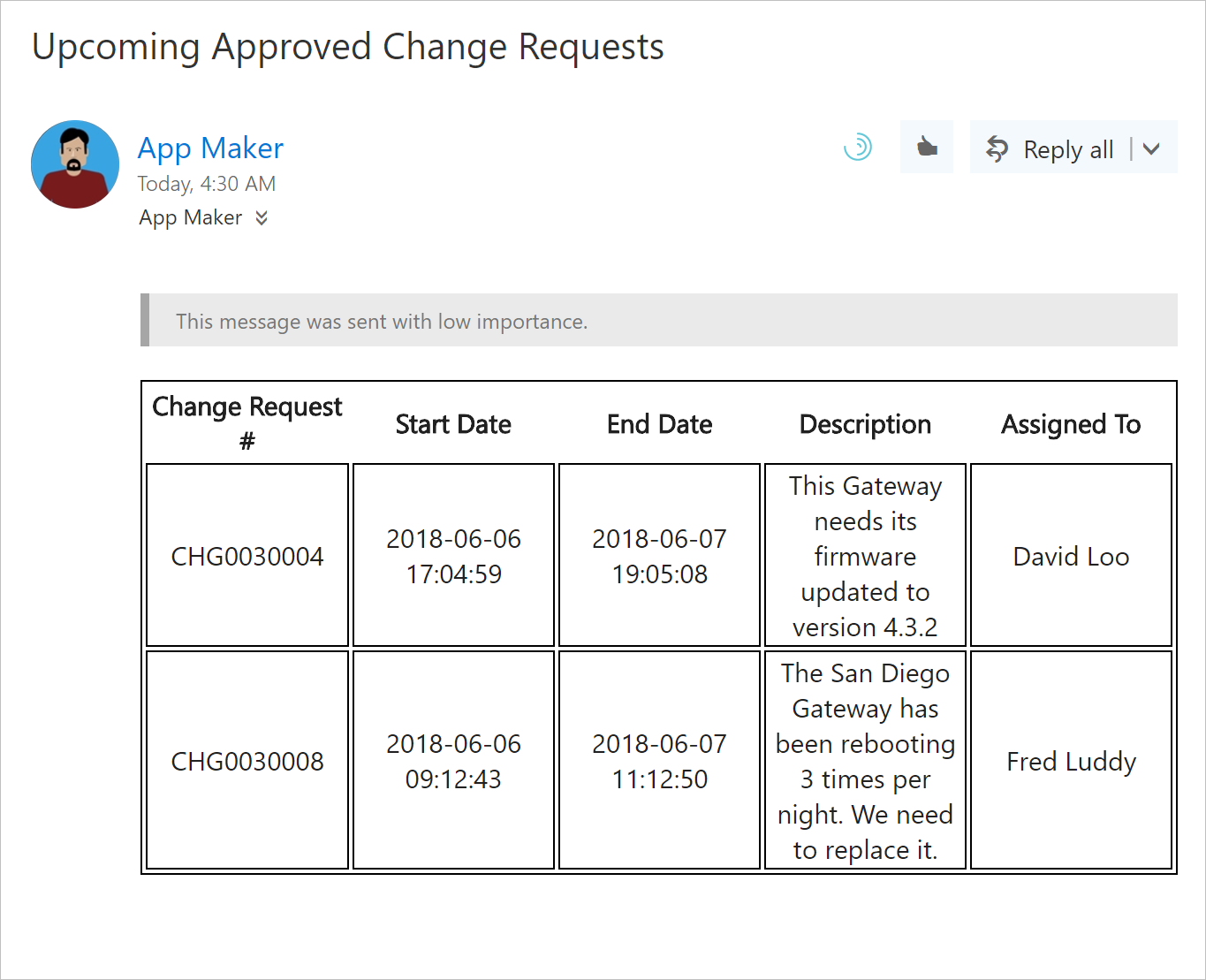 There are many opportunities to automate Change Management processes which can actually improve efficiency, engagement, compliance and success of changes. The scenario I am about to describe is one, of many, ways in which organizations can automate a change board process. To aid in the illustration of this scenario, we will use ServiceNow as our IT Service Management system and use the Microsoft Flow connector to interact with it.