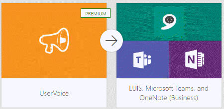 Monitor suggestions posted to UserVoice and use the Cognitive Services LUIS connector to predict the intent of each suggestion. If a feature request is detected, post the suggestion to your Teams channel and capture the description in your OneNote for Business. Use this Template