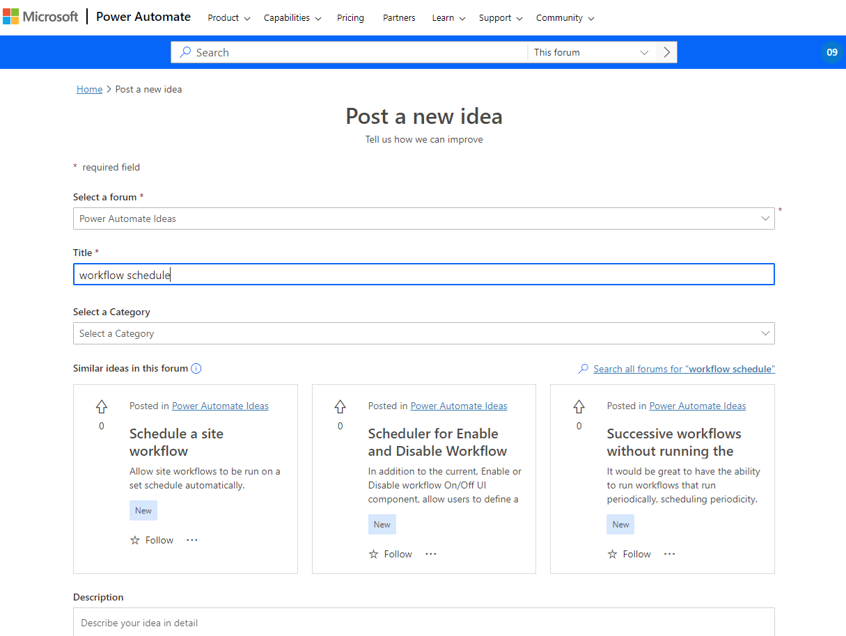 A new process for voting and managing ideas will be implemented as part of this change. Every month, our community team will review and triage all incoming ideas. Duplicate ideas will be grouped for easier search, and clarification may be requested from the author. Top ideas (ideas that get upvoted at least 50 times) will be sent to the Power Automate product team for review. During every planning cycle, the product team will review Top ideas and determine if and when they can be added to the roadmap.