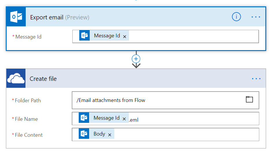 connector, called Export email,  that will generate a “.eml” file. You can then this file in SharePoint, for example.