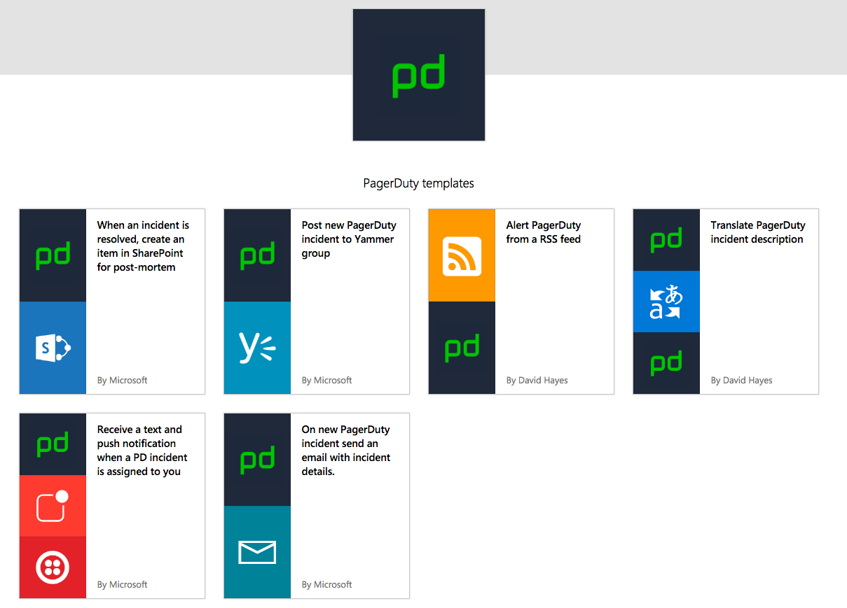 The Microsoft Flow platform now supports PagerDuty, one of the leading incident management solutions, enabling easy integrations between PagerDuty and other tools to maximize productivity for IT Ops, help desk, and developer teams. With the powers of PagerDuty and Flow combined, IT teams can now customize new ways of getting notified and responding to incidents across their infrastructure stacks.