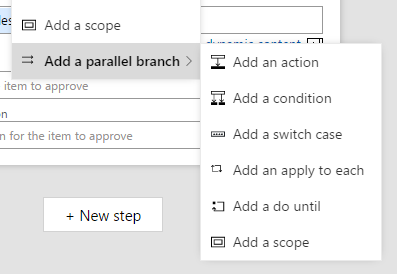 Next, select Add a parallel branch and what you’d like to add (in this case, just Add an action)