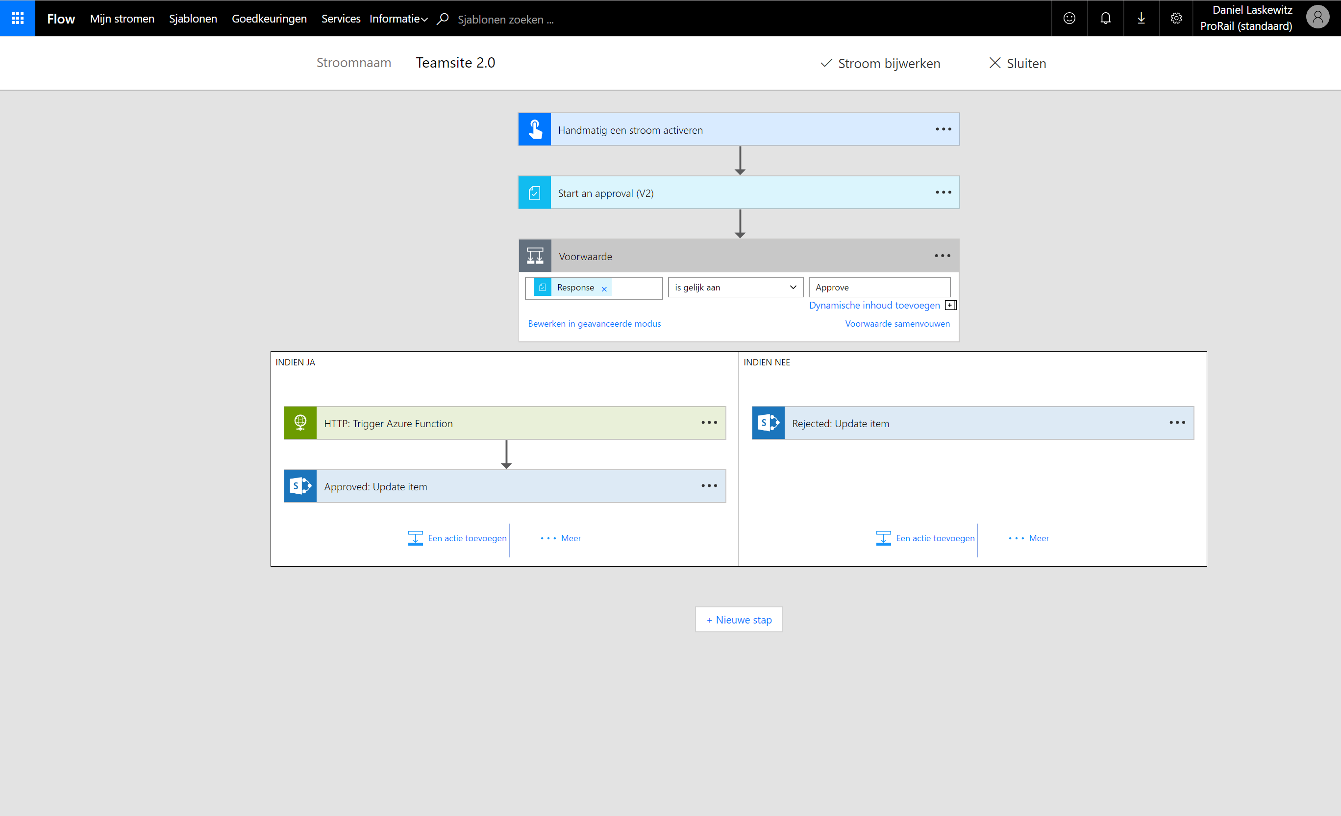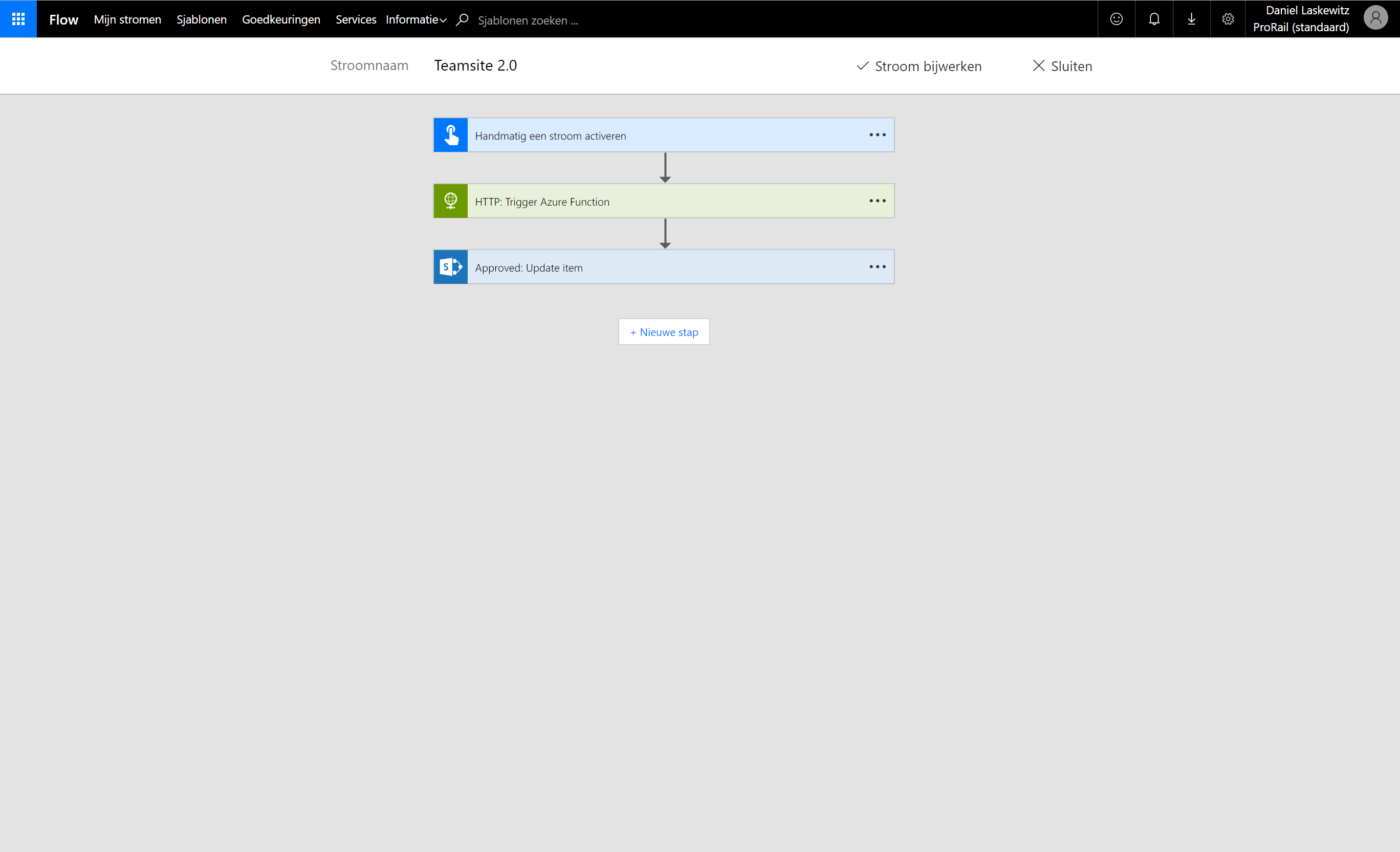 When recently speaking with Daniel Laskewitz from Sogeti, he shared that “Flow helps ProRail to be more productive with their site creation process. It’s easy to use different services and connect them to our Flows. The Flow buttons make it possible for the SharePoint administrators at ProRail to create a site from anywhere with any device.”