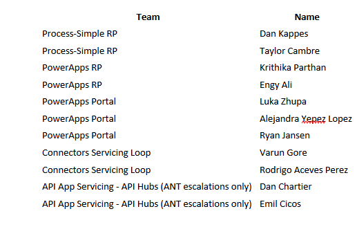 Internally at Microsoft, we use a system call Incident Call Manager (ICM) to handle live site servicing rotation and service outage notifications. Mulitple Microsoft Teams use ICM for the devOps/Live site rotations with different engineers on call for differing periods. As part of handling service outages and investigations, frequently we need to look up the engineers on call for a different service to get help. The Flows team (as is true for mulitple teams) needs to interact with mutliple partner teams while investigating incidents. Its pretty common for us to lookup who the onCall engineer is for a particular service – the flow I describe makes saves time for our OnCall engineers by updating an OneNote with the onCall lists for multiple teams each week.