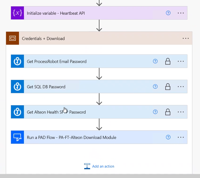 Handling data securely for personal health information is essential for the healthcare industry. USACS used secure inputs and outputs as well as Microsoft Azure cloud services, including Azure Key Vault, to manage sensitive information such as email and database passwords when bridging the data across Power Automate cloud flows and desktop flows.