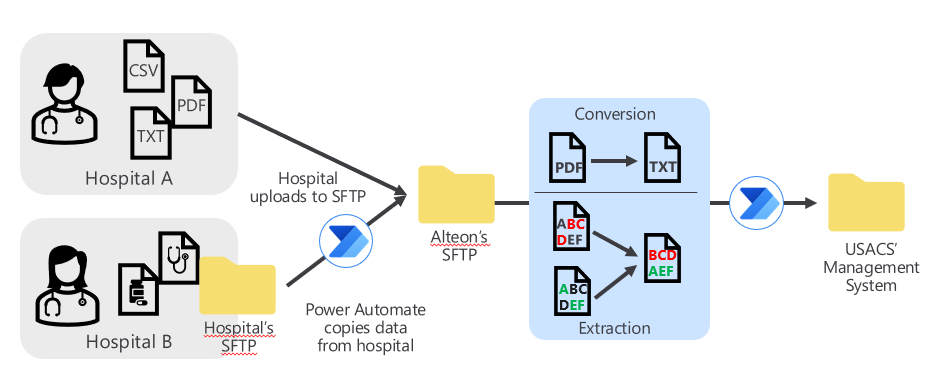 Alteon Health (recently acquired by US Acute Care Solutions (USACS)) is a leading provider of emergency medicine, hospitalist medicine, critical care, post-acute care, and virtual and home health services serving 200 practice locations in the United States. In this article, we’ll learn how the Alteon Health DevOps team uses Microsoft Power Automate to automatically take 20 million medical records each year from a wide variety of providers and process them into a coherent medical history for each patient that can be used for both care history and billing purposes.
