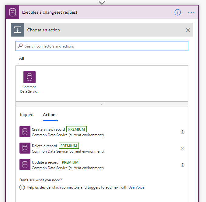 The Common Data Service (current environment) connector is available for all new flows created from the Solutions tab in the left navigation in the Power Automate portal. Whenever you build a flow against CDS we strongly recommend using Solutions – as that provides you a way to group and package your flows, for example, to move them to a production environment after you’ve completed development. This connector is not available for flows built outside of Solutions.