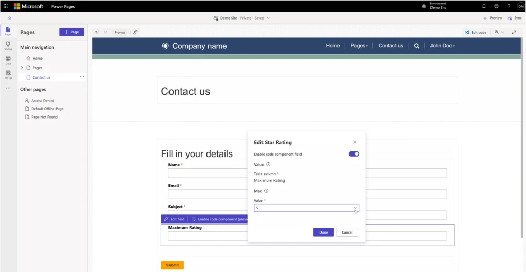 To learn more, check out “Edit code component properties on form fields” and “Edit code components in webpages” in the Power Pages documentation.