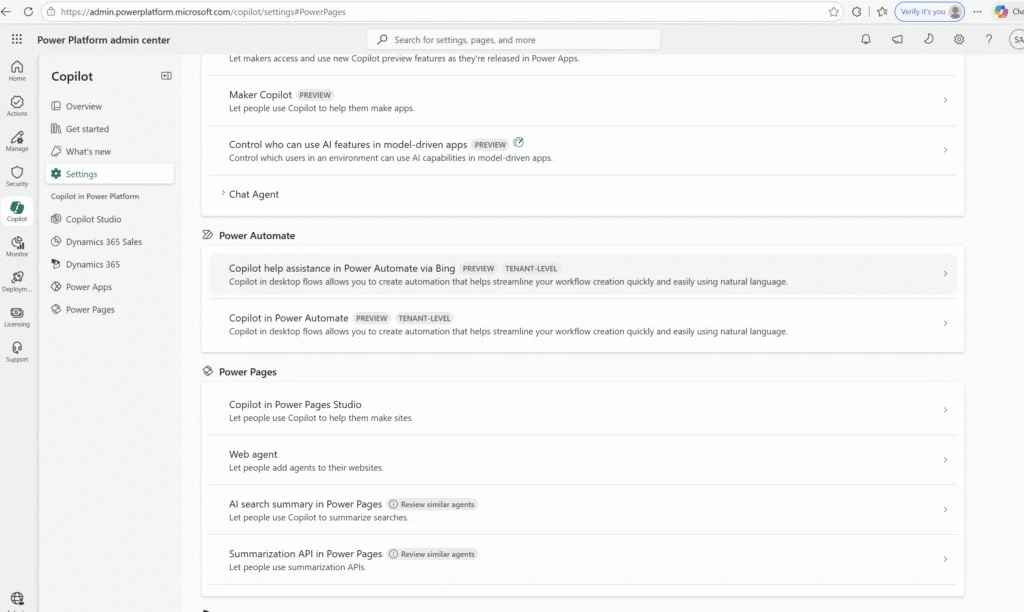 This centralized experience provides a single location for managing AI-related settings and integrations, helping ensure consistent configuration across environments and alignment with organizational governance policies.