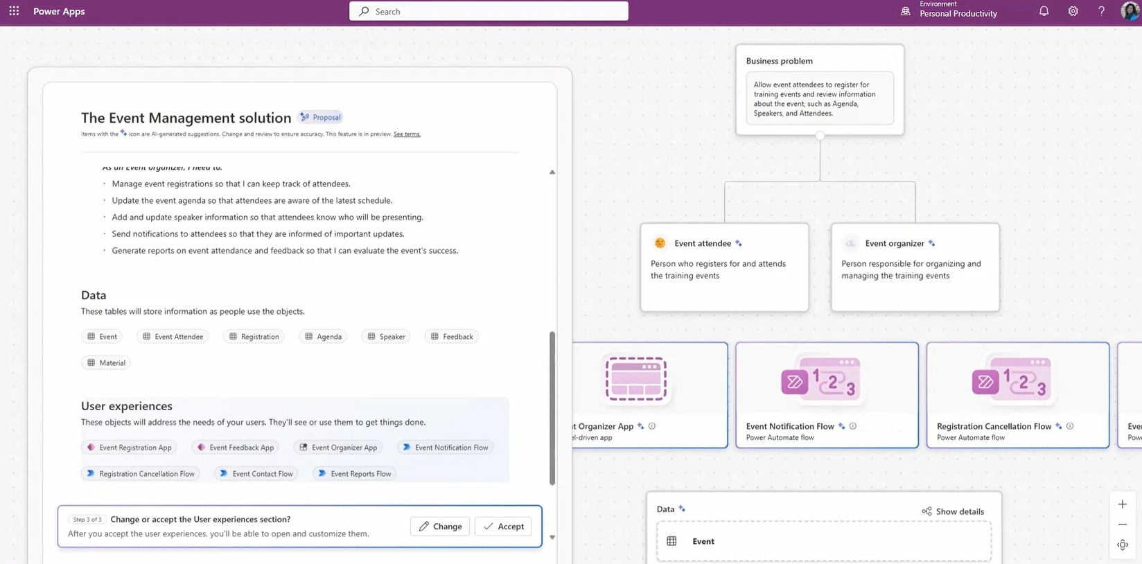 Microsoft Power Apps announces ability to co-create a solution plan with Copilot in Power Apps and improved intelligent features for data input and management. -