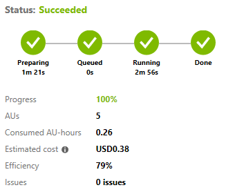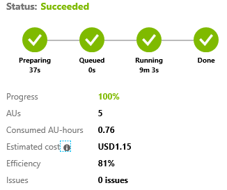While the Azure prices on storage, computation, and read/write operations are clearly listed, sometimes it’s not a trivial task to estimate charges. How much cloud resource a typical analytical project will consume, and what degree of parallelism that you specify to execute the task impact costs. We hope the following two examples can give you a better reference point to estimate the Azure charges you may encounter.
