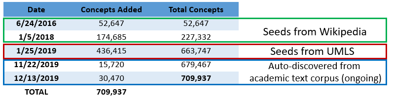January 2019 update – Concepts seeded from Unified Medical Language System (UMLS)