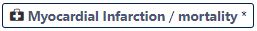 In contrast, when asking MA to interpret “mortality” as a qualifier, we can see “mortality” is often an aspect in “internal medicine”, “surgery”, “cardiology” or “cancer” research. Take heart attack (MeSH descriptor “myocardial infarction”) as an example. As MA can now show, this area of research can be studied through many aspects, including “mortality” but also others ranging from “drug treatment” to “complications”: