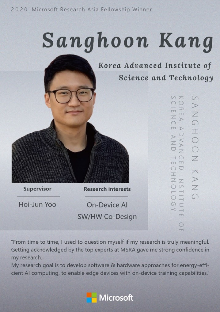 The fellowship means a lot to the students, and they are looking forward to the opportunities the Fellowship further offers apart from the scholarship. “I believe it is the biggest honor during the research career for Ph.D. students in the Asia-Pacific region.” Sanghyun Woo said. He is eager to co-work with researchers at MSRA, where he thinks has the world’s best technologies in field of visual recognition. Juheon Yi conceives that the Fellowship indicates that he is conducting meaningful research and pursuing the right path. He looks forward to the internship at the MSRA and eager to participate in various networking events and interact with other fellowship winners. “Getting acknowledged by the top experts at MSRA gave me strong confidence in my research.” Sanghoon Kang said. He is also quite certain that he like taking challenges and putting himself in new environments.