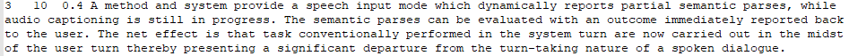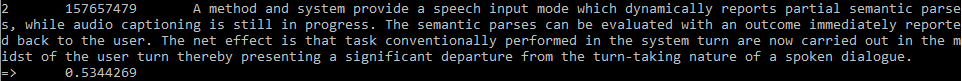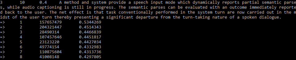 Example 2: call ComputeSimilarity (string text, long fieldOfStudyId) to compute how much a given text is similar to a concept in MAG, as specified by its entity ID. This example uses another patent summary and compares the paragraph with the “Closed caption” concept of the ID “157657479.”