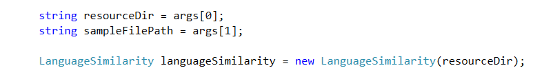 The demo is a console program that reads in the resource file directory and the path of the sample.txt file to initialize the LanguageSimilarity model: