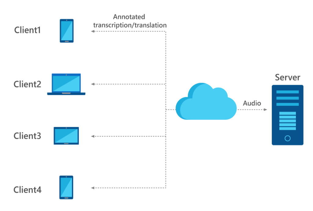 The central idea behind our approach is to leverage any internet-connected devices, such as the laptops and smart phones that attendees typically bring to meetings, and virtually form an ad hoc microphone array in the cloud. With our approach, teams would be able to choose to use the cell phones, laptops, and tablets they already bring to meetings to enable high-accuracy transcription without needing special-purpose hardware.