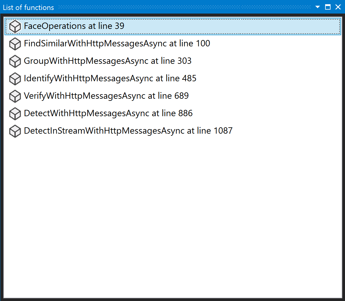 • Function list: Provides a navigable, accessible list of functions present in the current file.