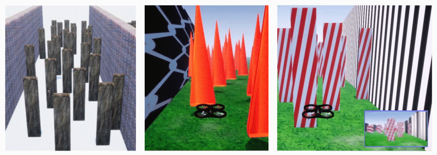 We train four types of policies using the Proximal Policy Optimization (PPO) algorithm in AirSim environments: