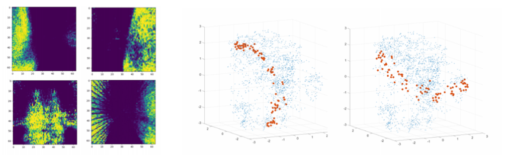 We make use of our high-fidelity robotics simulator, Microsoft AirSim (opens in new tab), to implement and test this technique for obstacle avoidance using drones. We recently released a new feature that allows “simulating” the output of an event camera inside AirSim, which we use to generate event data from a drone flying around in an obstacle field, and we first train the event-VAE on this data composed of event observations of obstacles.