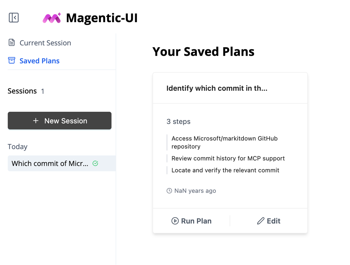 - Learning from experience (plan learning). Magentic-UI can learn and save plans from previous interactions to improve task completion for future tasks.