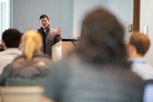 Steve Rowe, Data Science and Engineering Manager in the Core Data team, and Eric Olson, Data Science Lead on the Developer Platform team within Azure Cosine group, gave a fantastic introduction to ML, “Lifting the Lid on ML.” The goal was to provide students with enough background on ML to investigate further themselves. The talk was well received by the students based on the exciting interactions we saw during and following the presentation.