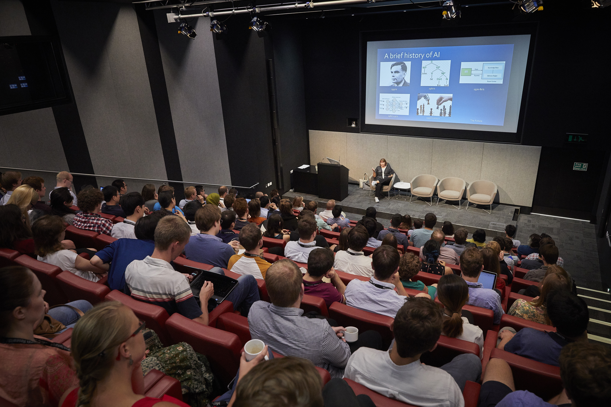On the more technical side, MS Technical Fellow and MSRC Lab Director Christopher Bishop talked about model-based machine learning, giving a historic perspective that drew from his almost two decades of machine learning work at Microsoft Research Cambridge. Hermann Hauser, a Cambridge-based serial entrepreneur and co-founder of Amadeus Capital Partners, spoke about “Intelligent Machines”, comparing the biological intelligent machines that are human beings with the artificial intelligence machines created by them and emphasizing the importance of choosing human-oriented goals as AIs increase in power and ubiquity.