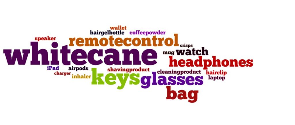 To help us with our research, we have conducted a pilot study to investigate how to collect these videos. During that pilot study, we gathered 193 videos from eight people who are blind or low vision, each of whom were asked to take videos of five different objects. For each object, we have videos in different settings in their home and using different filming techniques, some of which they were free to choose. We found that common items that were captured on video included users’ own white canes, keys, glasses, remote controls, bags, and headphones, many of which users wanted to identify and locate. The videos also included some rather surprising items, such as crisps (or chips to Americans). The quality of videos from the pilot study was good for machine learning purposes, revealing no serious issues due to lighting or items being out of frame.