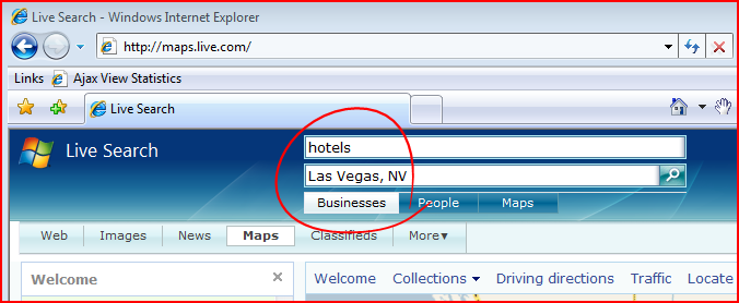 - Double-click a few times in the middle of the map to zoom into the center of Las Vegas. While you use maps.live.com, Ajax View is monitoring and capturing the applications behavior.