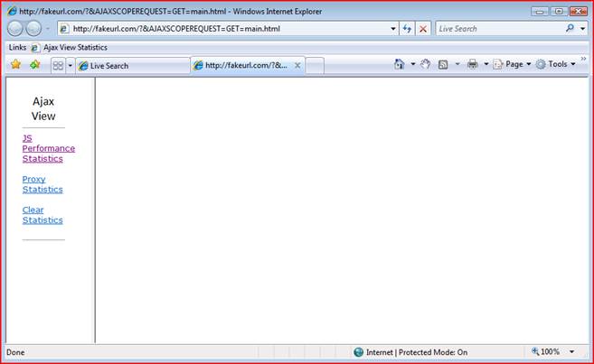 This URL will be intercepted by the Ajax View proxy. Instead of sending this request to “fakeurl.com”, Ajax View will return its own statistics page.