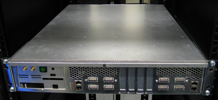The pictures below show the rack mounted 2U BEE3 system and the inside of the 2U system with the major components labeled.