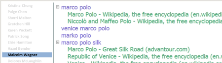 A teacher can “zoom in” on an individual student to see all pages visited and queries executed by this student during the search task.