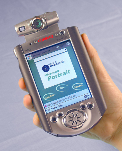 Microsoft Portrait enables two-way full-color video conferencing on PCs, Pocket PCs and Handheld PCs. This means with Microsoft Portrait, a Pocket PC or Handheld PC can not only receive and display full-color video, but also capture and send full-color video in real-time.