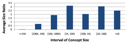 Figure 5: Relative size of sample concepts to Freebase