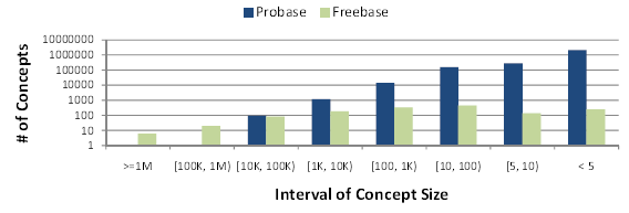 Figure 4: Concept size distributions in Probase and Freebase