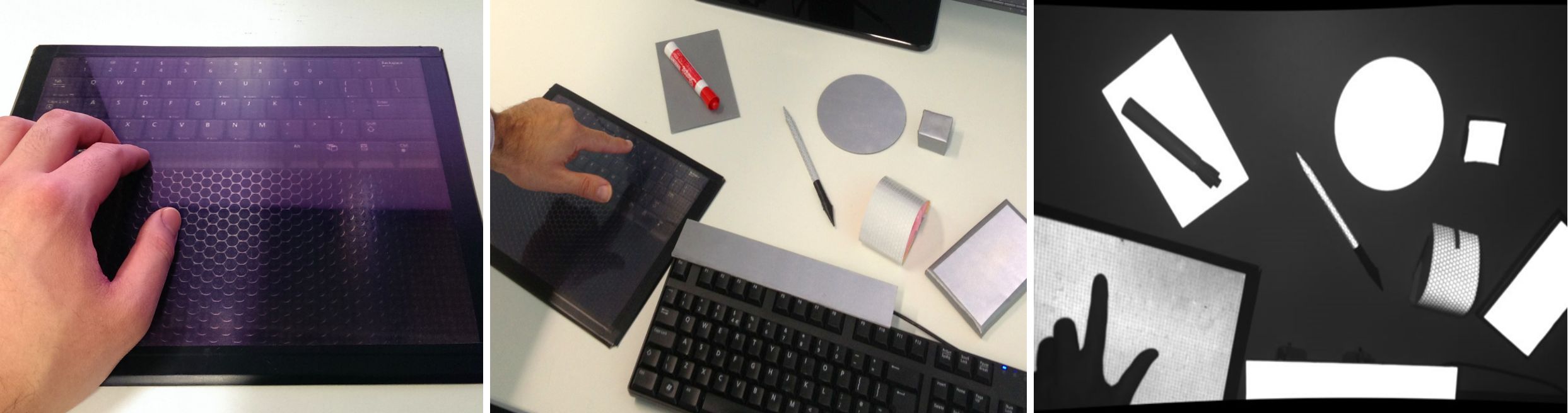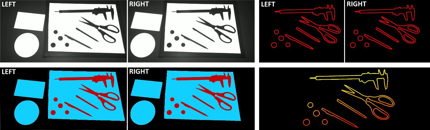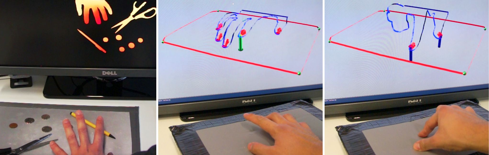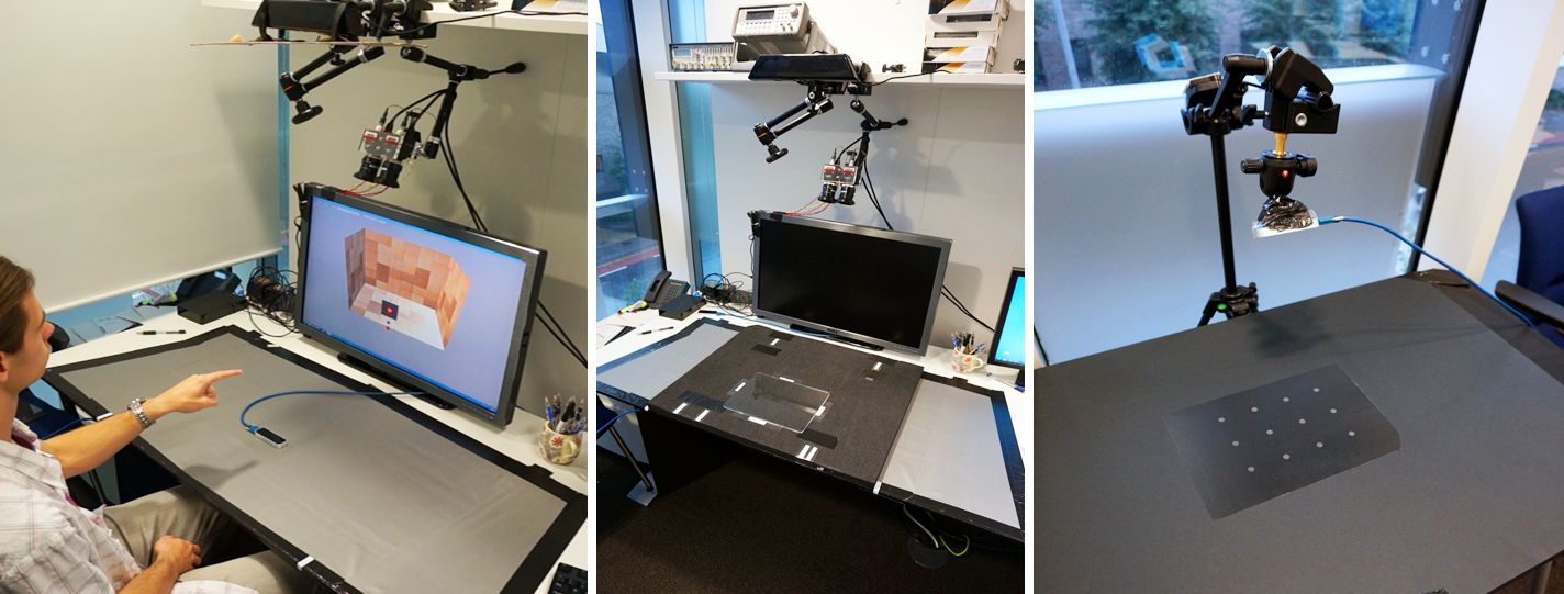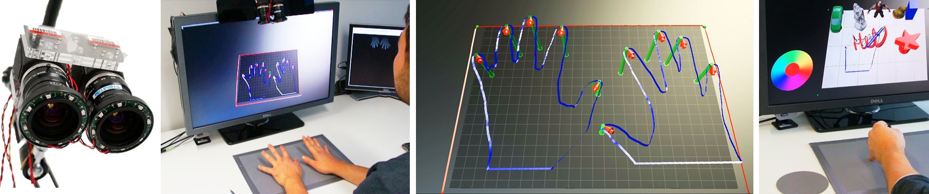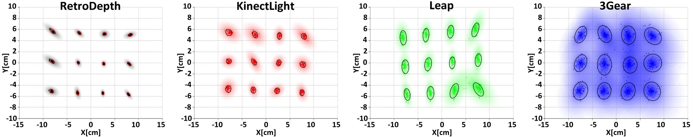 We present RetroDepth, a new vision-based system for accurately sensing the 3D silhouettes of hands, styluses, and other objects, as they interact on and above physical surfaces. Our setup is simple, cheap, and easily reproducible, comprising of two infrared cameras, diffuse infrared LEDs, and any off-the-shelf retro-reflective material. The retro-reflector aids image segmentation, creating a strong contrast between the surface and any object in proximity. A new highly efficient stereo matching algorithm precisely estimates the 3D contours of interacting objects and the retro-reflective surfaces. A novel pipeline enables 3D finger, hand and object tracking, as well as gesture recognition, purely using these 3D contours. We demonstrate high-precision sensing, allowing robust disambiguation between a finger or stylus touching, pressing or interacting above the surface. This allows many interactive scenarios that seamlessly mix together freehand 3D interactions with touch, pressure and stylus input. As shown, these rich modalities of input are enabled on and above any retro-reflective surface, including custom “physical widgets” fabricated by users. We compare our system with Kinect and Leap Motion, and conclude with limitations and future work.