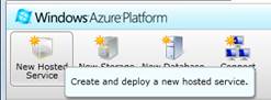 and with your account name and key in the highlighted lines: Now that you have edited the configuration file to be appropriate for your deployment, let’s create a new hosted compute service and upload the deployment. First, click on the “New Hosted Service” button from the Windows Azure portal: