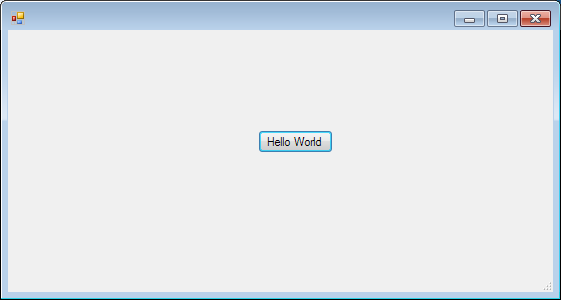 >>> f = System.Windows.Forms.Form()>>> b = System.Windows.Forms.Button()>>> f.Controls.Add(b)>>> b.Text = "Hello World">>> b.Location = System.Drawing.Point(250,100)>>> f.Width = 561>>> def printhello(sender, evtinfo): print "Hello World!" >>> b.Click += printhello>>> f.ShowDialog()