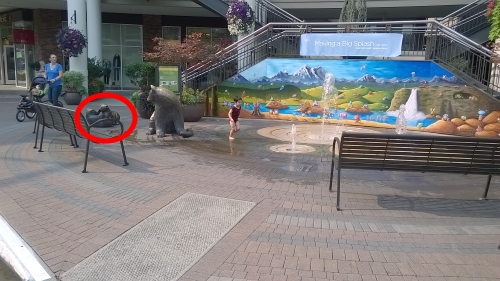 For this task, we want you to take a picture of the statue of the bear cubs at Redmond Town Center, whose address is 16495 NE 74th St, Redmond, WA 98052, shown on the map at the bottom of this page. You should take a full frame picture (no cropping) like the example below.
