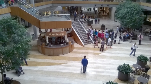 For this task, we want you to take a picture of the sign above the central information desk inside Bellevue Square Mall, whose address is 575 Bellevue Way NE, Bellevue, WA 98004, shown on the map at the bottom of this page. You should take a full frame picture (no cropping) like the example below.