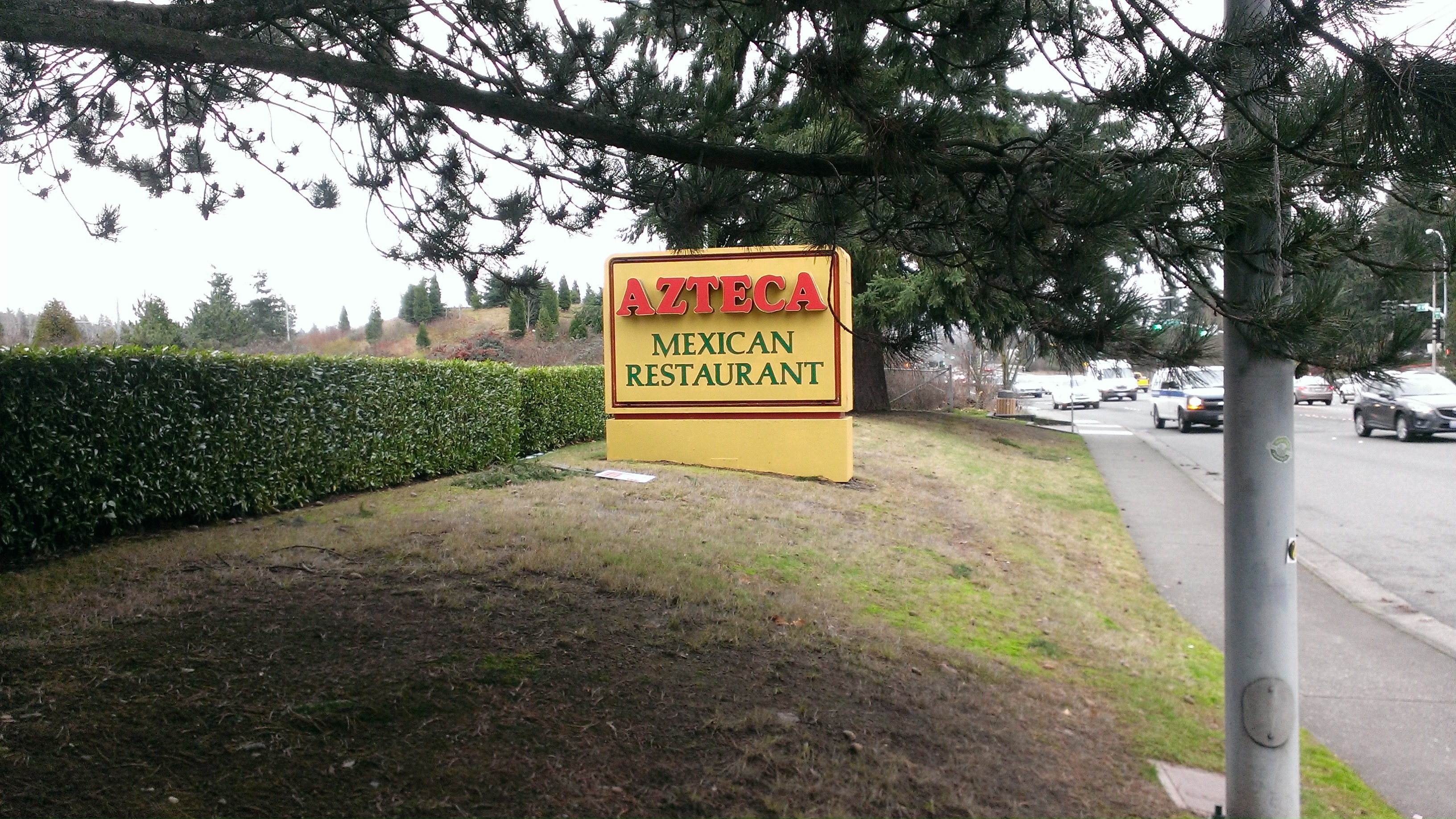 Azteca Mexican Restaurant in Redmond from across 148th Ave NE
