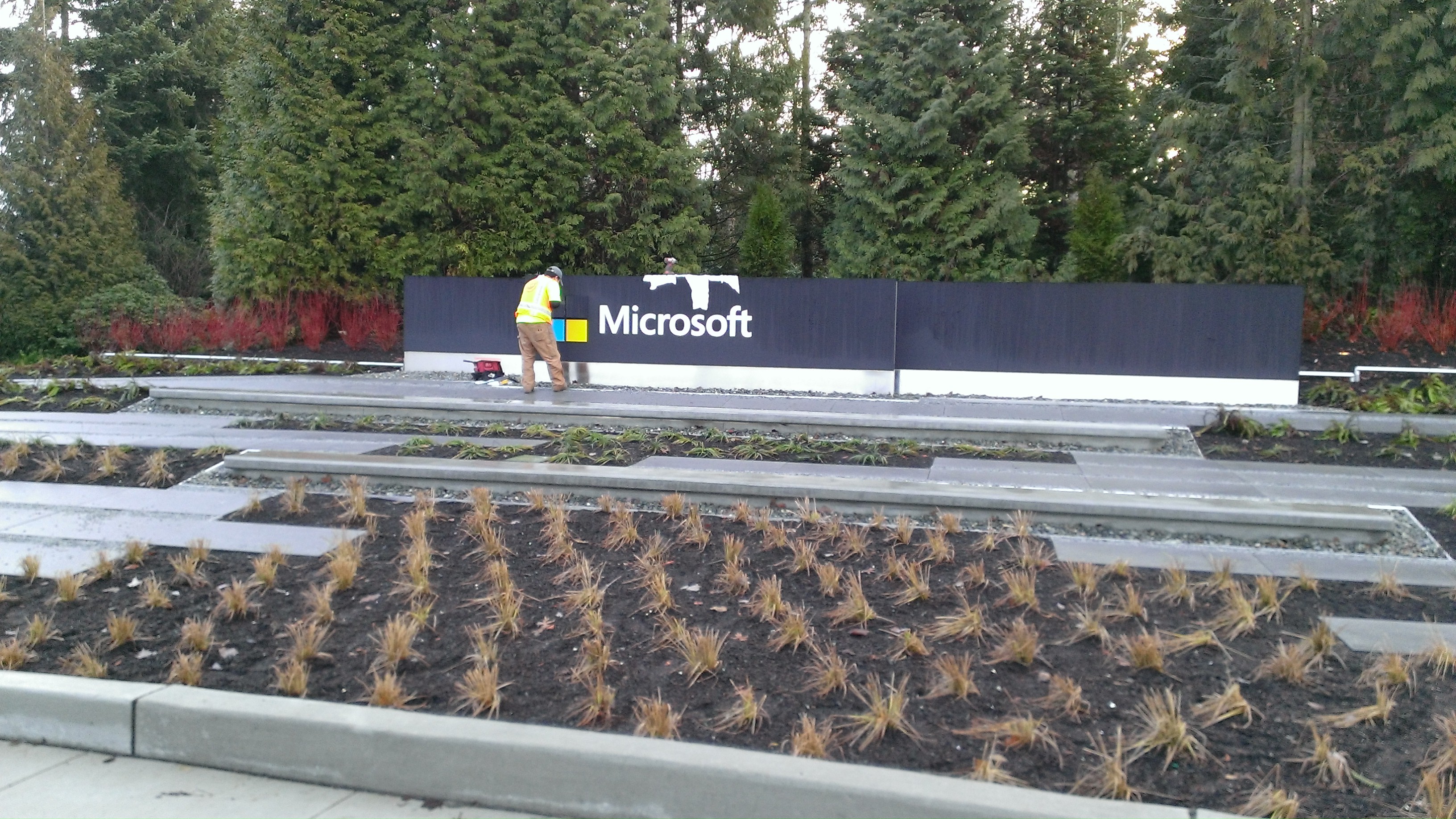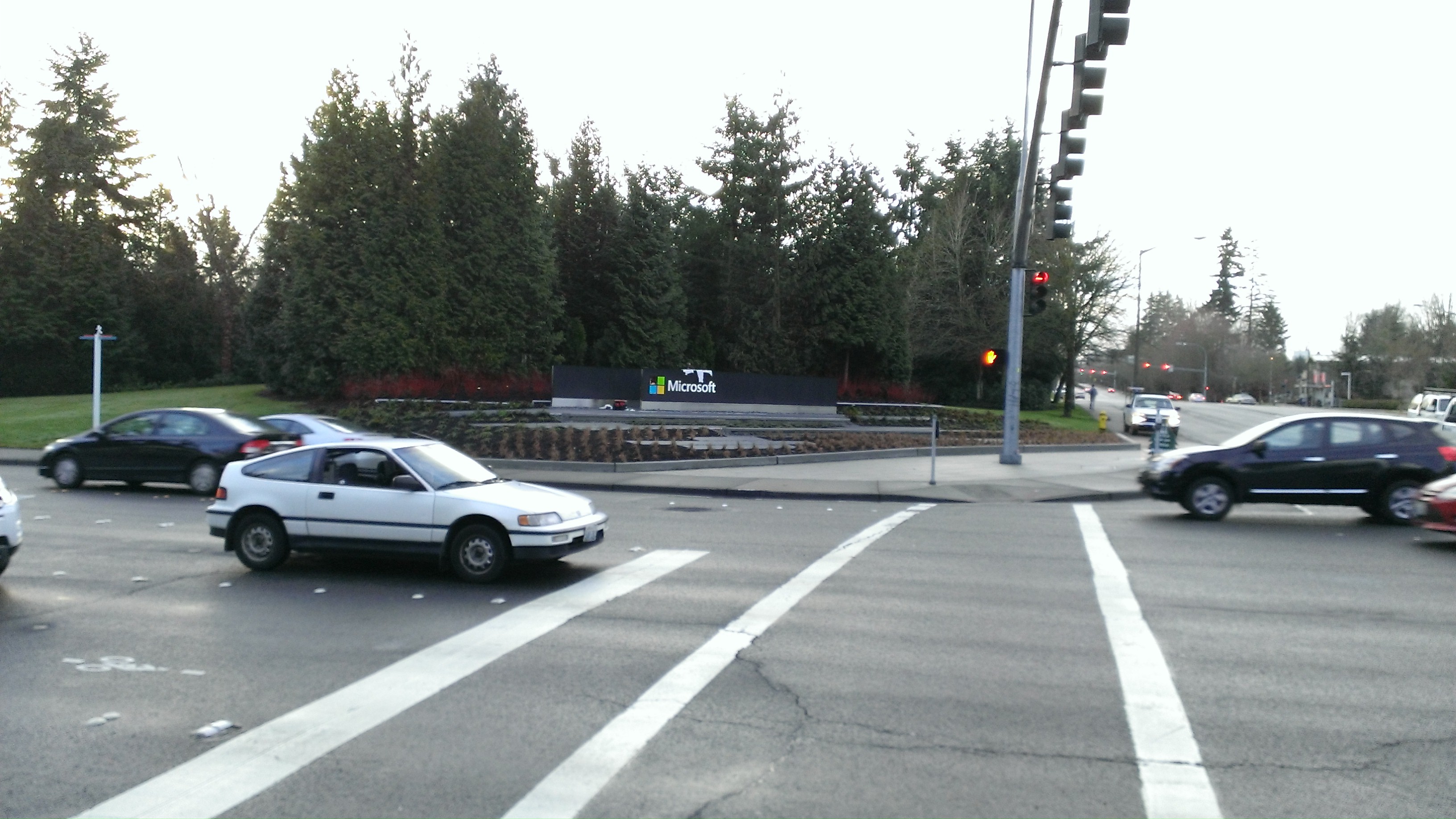 Microsoft sign from adjacent corner, looking south along 156th Ave NE